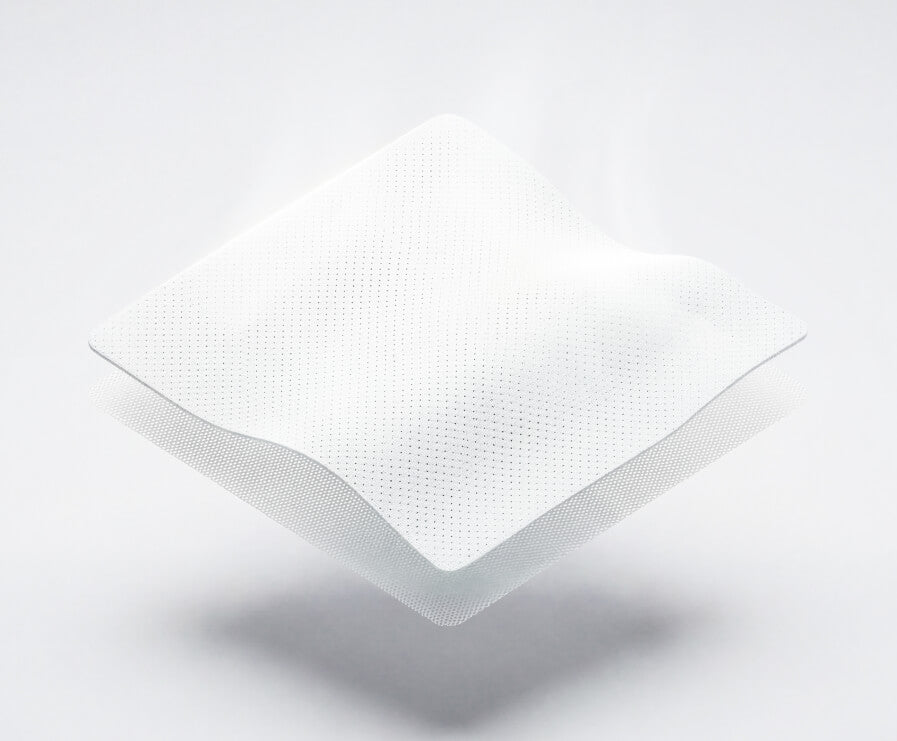 Hundreds of pin-sized vents dump heat and pull fresh air in for an on-shirt cooling system.